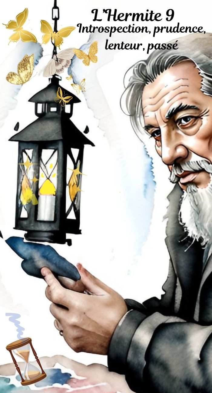 Vous apercevez en fond la carte Hermite de mon projet Tarot.